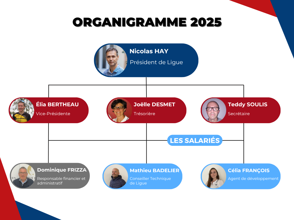 C’est l’organe décisionnaire en charge du fonctionnement de la Ligue. Le CA compte 12 élus au 15/03/2024.