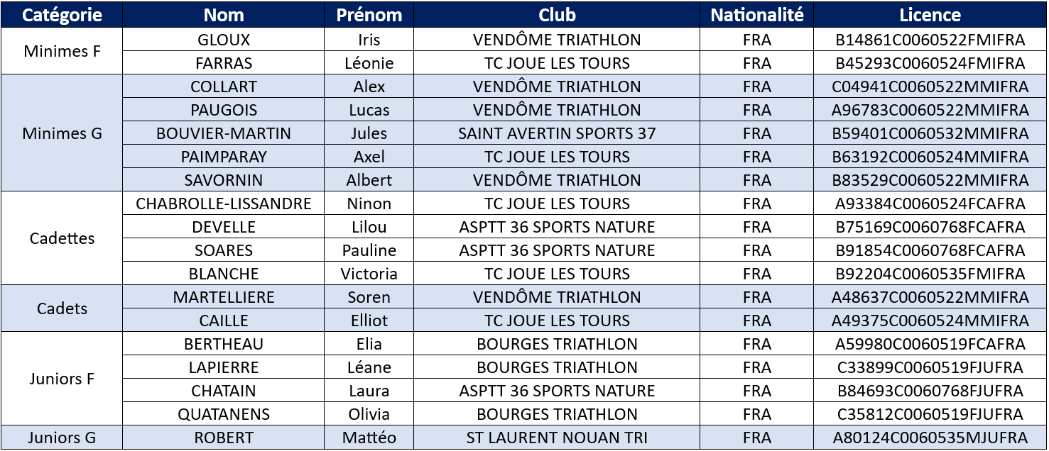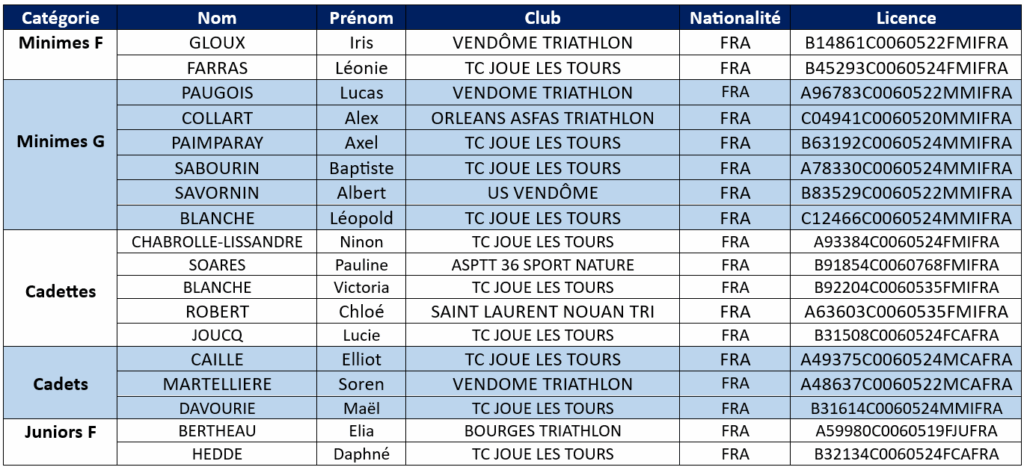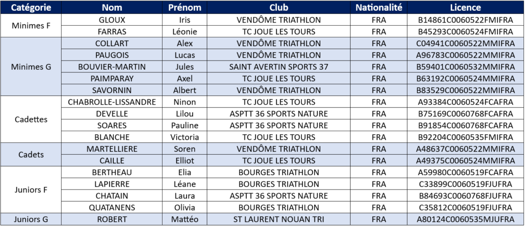 Sélection Championnat de France Jeunes de Triathlon 2025 (18/05)
